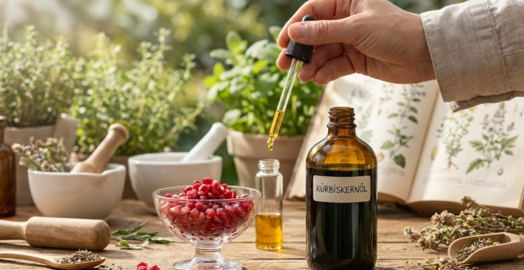- Botanische Präzision: Achten Sie auf die lateinischen Namen. Ein „Kürbiskernöl“ ist gut, aber für urologische Zwecke suchen wir gezielt nach der Qualität des Arzneikürbisses (Cucurbita pepo).