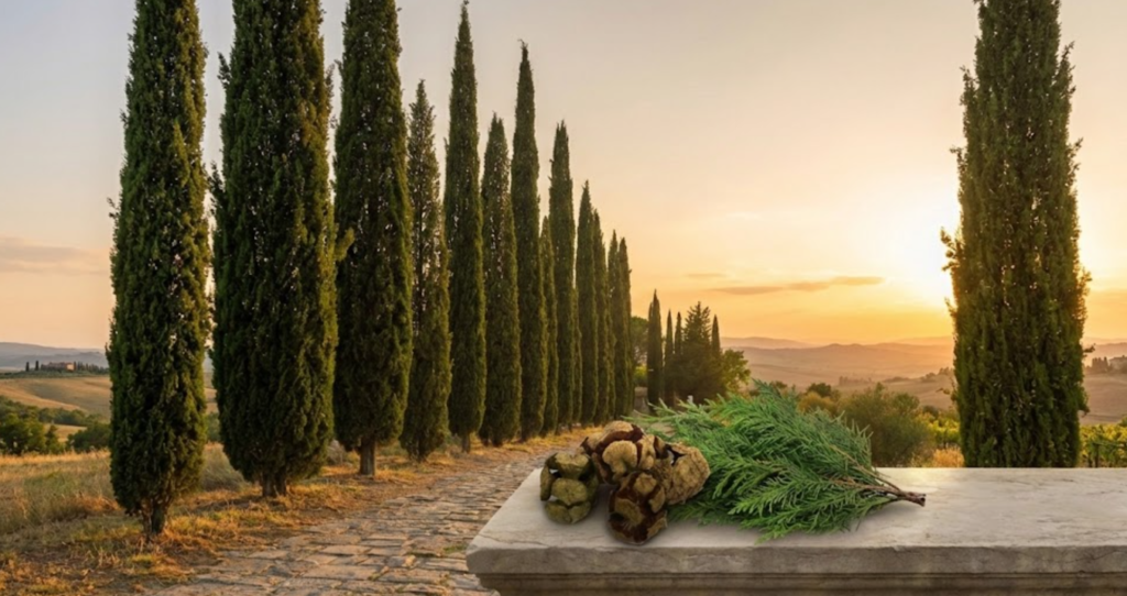 Das ätherische Öl der Zypresse ist hochkonzentriert und enthält komplexe Terpene.
